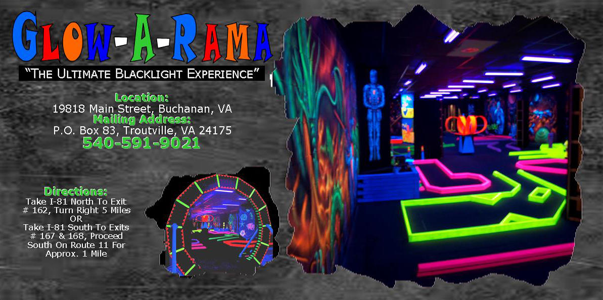 t Directions t 18 Hole Blacklight Mini-Golf t Blacklight Game Room t Haunted House t t Parties t t Leagues t Special Events t James River & Lord Botetourt t Community Participation t Hole-in-One Club t Testimonials t Contact Us "Like" Us On Watch Us On YouTube Also, Visit Our Other Websites Art on Gold - Works of art are reproduced onto Elegant Goldtone metal www.artongoldcreations.com/ Greetings on Gold - Original Poetry and Photographs combined onto Goldtone metal to create, “the card that is a gift!” www.greetingsongold.com/ Portraits on Gold - Personalized creations turn any photo into a treasured memory www.portraitsongold.com/ Golden Quill Press - Cooperative Publishing, editing, manuscript preparations, assist writers in getting their works published www.goldenquillpress.com/\ |